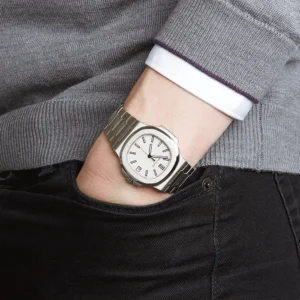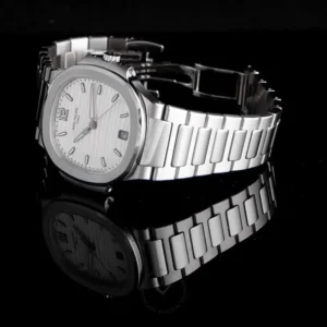 The Nautilus Ladies Self-Winding Watch is made of stainless steel, expressing casual elegance and ultimate femininity, with a choice of two new dial colors: silver white and smoke gray.