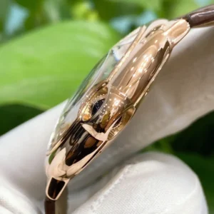 interchangeable 18K rose gold (750/1000) deployant buckle, calendar aperture at 3 o’clock.