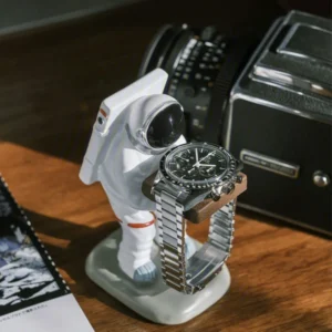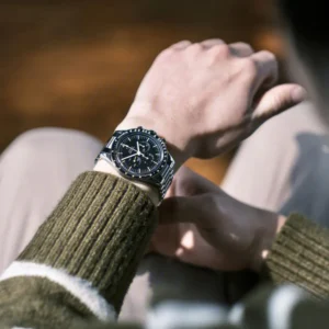 The 39.70 mm case is in stainless steel and is inspired by the same 3rd generation style worn during America’s first spacewalk in 1965. There is also a bezel ring in polished black ceramic [ZrO2] with the tachymeter scale in white enamel.