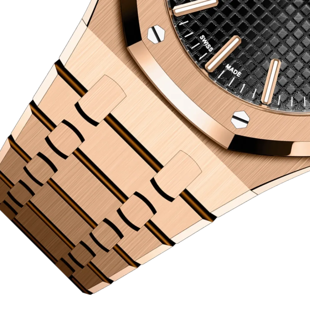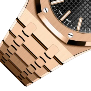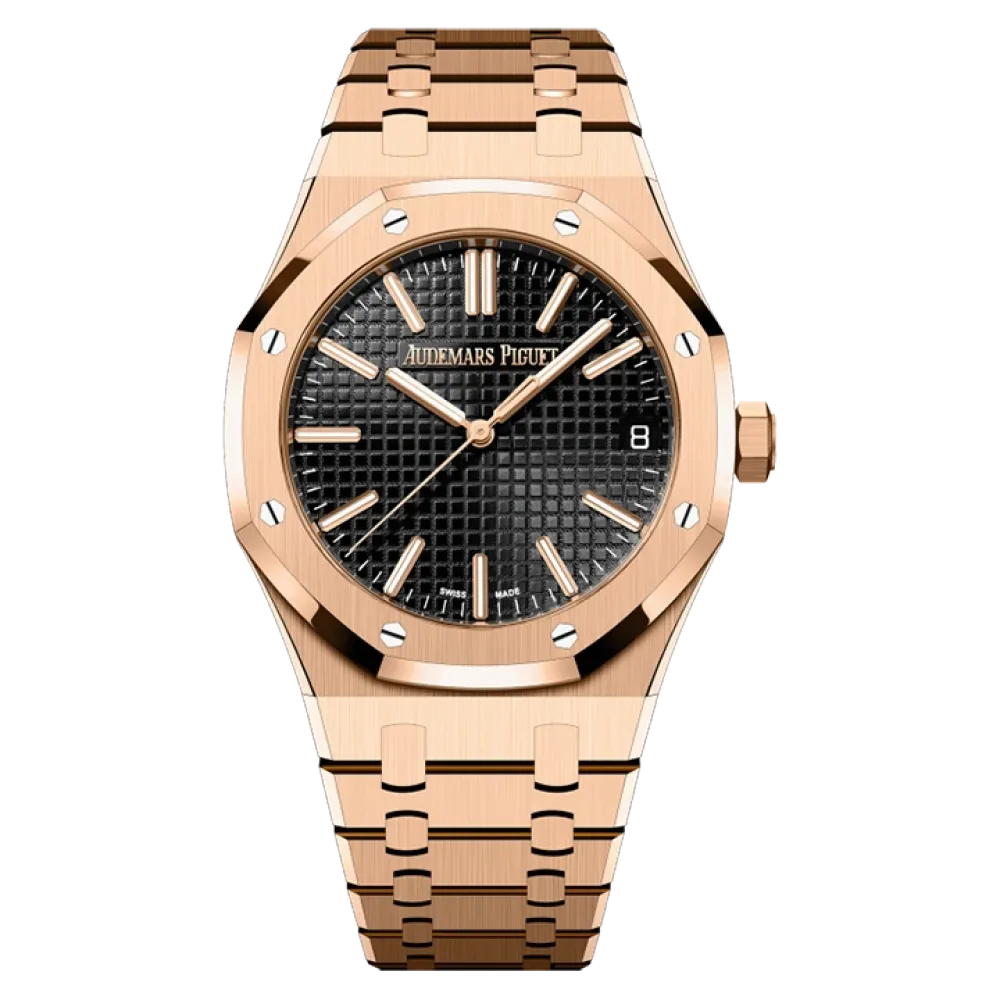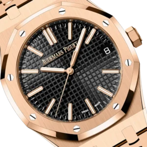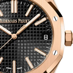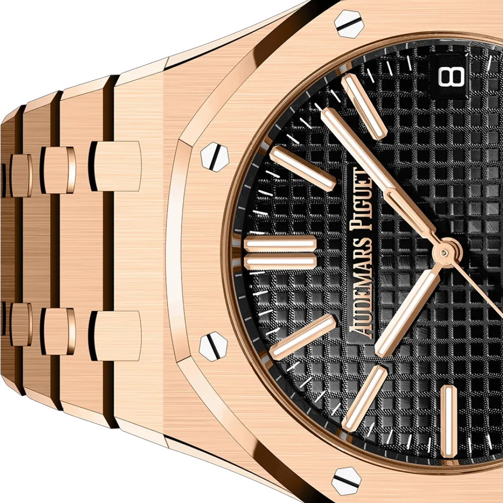 The 18-carat pink gold Royal Oak Selfwinding in 41 mm is enriched with the collection’s